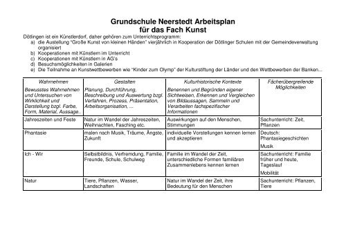 Grundschule Neerstedt Arbeitsplan Fur Das Fach Kunst
